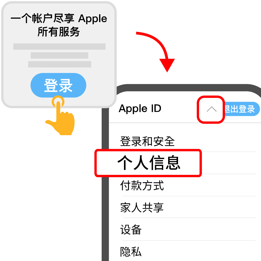 1. 点击<登录>,输入自己的 Apple ID