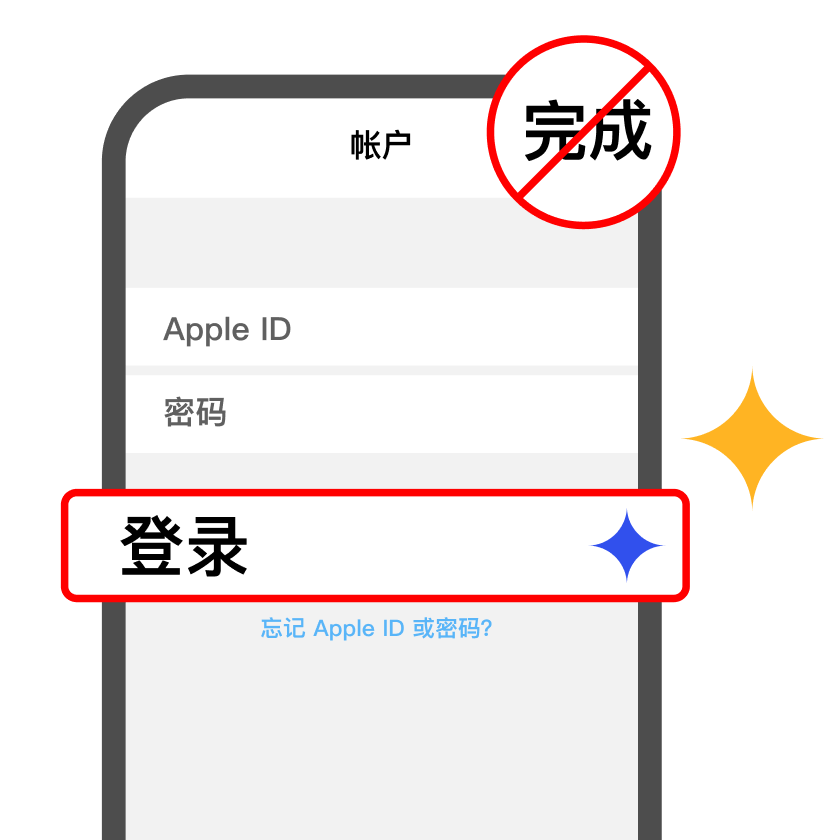 注意!不要点击右上角的完成!而是点击密码下方的登录!!